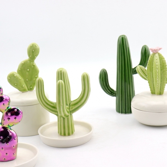2,000 pcsPainted ceramic cactus holds up your rings and things with his stem segments and Cactus Small Catch All Dish. Whimsy meets practicality with this charming cactus, which sits a top a smooth white tray. An artful way to hold your rings, earrings and other small valuables. Crafted from ceramic with a polished glaze finish.