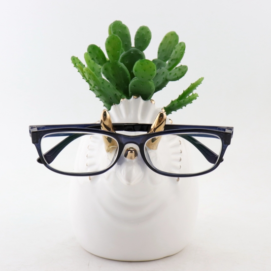 With dino shape, white glaze finish and real gold shiny paint, multiple functions as Dino Planter, Dino Eyeglasses Holder and Decorative Dino Figurine. Could a stylish way to control some of your chaos.
