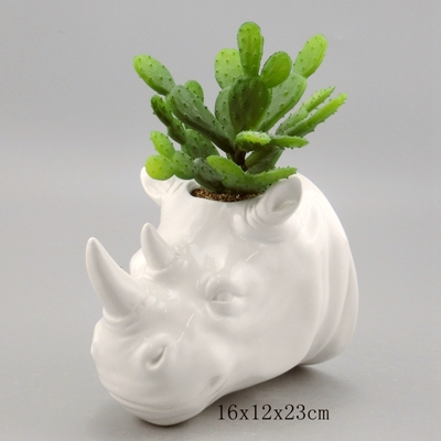 Ceramic rhino wall hanging planter, is handcrafted of fine earthenware and arrive ready to hang. Fill with your favorite fresh or faux blooms for an unexpectedly stylish wall accent; try grouping several for a the most impact. Available as an elephant, a rhino and a hippo. Faux plants are available, can be sold by a set with plants and ceramic, the animal head ceramic wall planter is quite popular, contact us for more options.