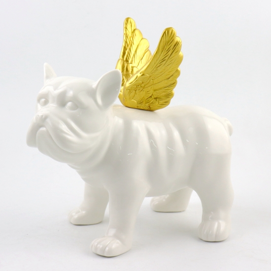 If you are looking for animal with wings collection, try our Bulldog Sculpture with Gold Wings. It's made in porcelain in white glossy at dog body, painted gold at wings, very exquisite and good material and quality for your home or bedroom decor use.