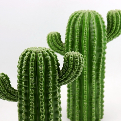Give your Southwest decor an artistic touch with this Decorative Ceramic Cactus Sculpture. It's also a great piece to give Western inspired decor a unique dash of desert art. This cactus is creatively sculpted of ceramic in a glossy green glazed finish with all-over embossed dots and two upright branches. You'll love to touch this cactus without the worry of getting stung by needles. It never needs watering but the plants you display just might! Enjoy this set of 2 cactus anywhere indoors or out; it's a fun piece for the garden patio or near the pool.