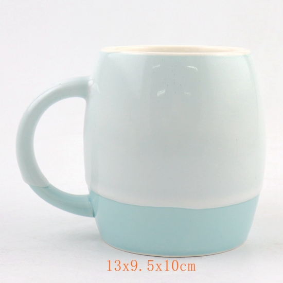 Made in good porcelain, with two tone glaze finish, our Two - Tone Ceramic Coffee Mugs is born not only to a drinking tool but a gift or decor accent for your office desk or kitchen. Microwave and dishwasher safe.