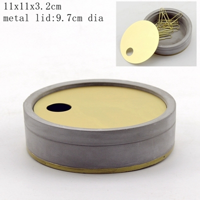This is a great idea to storage for office ornaments, or your jewelry accessories. Made in smooth polishing concrete, with grey effect finish. Added with satin brass metal lid. Can be also as a candle holder, planter or candle jars. It depends on what you need it to be. Total three size options.
